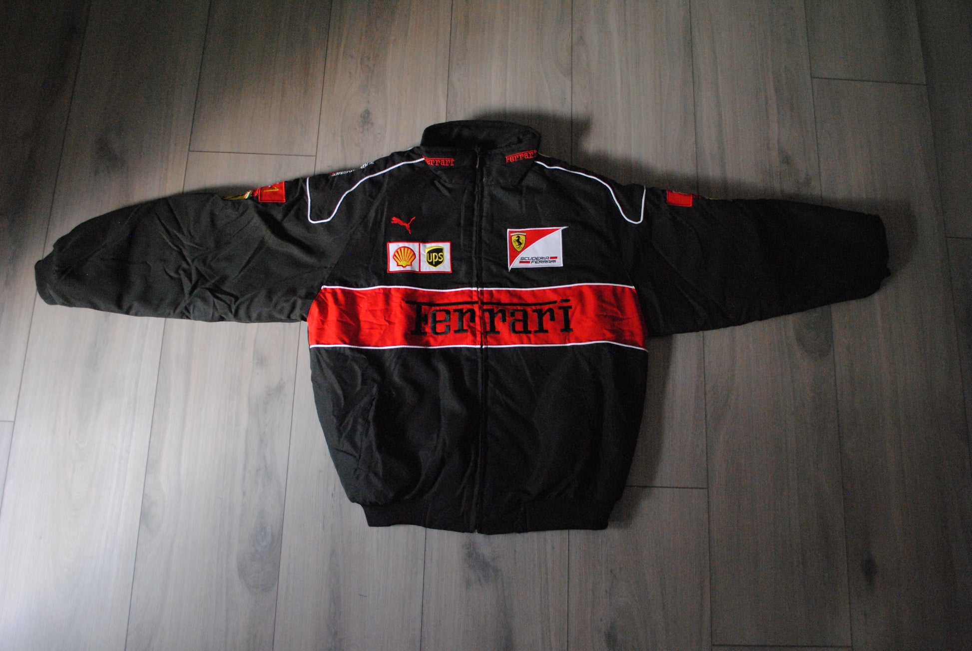 Embark on a thrilling journey of speed and luxury with our Ferrari Vintage Jacket. A symbol of automotive excellence, this iconic piece pays homage to the prestigious Ferrari brand and its legendary racing heritage. Impeccably crafted with premium materials, the jacket exudes a timeless appeal that transcends the decades. The iconic Ferrari emblem proudly adorns the chest, reflecting a legacy of speed, innovation, and victory. Step into the world of motorsport legends and embody the passion and prestige of Ferrari with this exclusive vintage jacket. Whether you're a racing enthusiast or a fashion aficionado, this jacket is a captivating statement piece that captures the allure of speed and elegance in every detail.